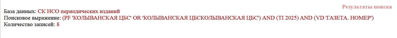 Summary0000186: Периодика МБУ "Колыванская ЦБС"