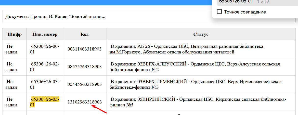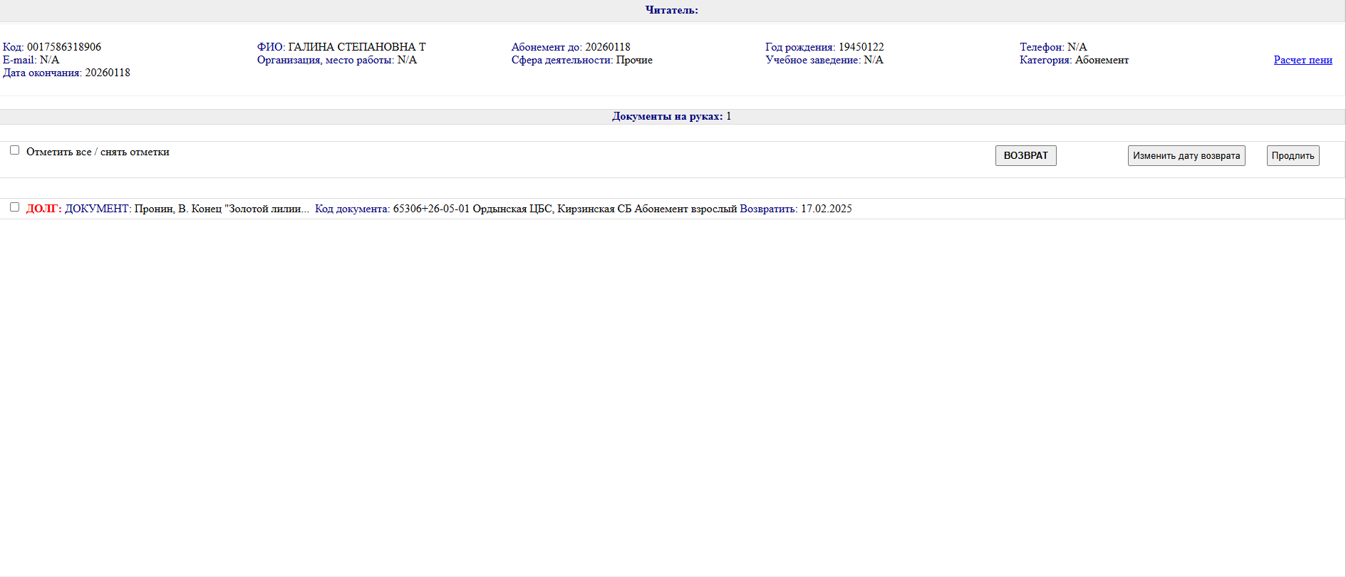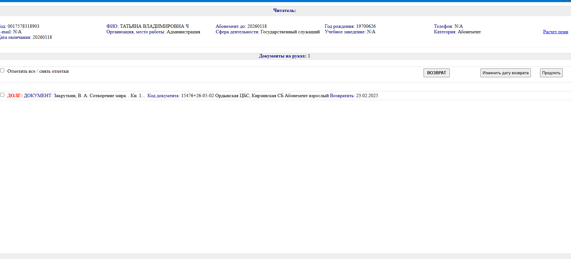 | Additional Information | Штрихкод читателя 0017578318903 / инв. 15476+26-05-01 Штрихкод читателя 0017586318906 / инв. 65306+26-05-01 | ||||