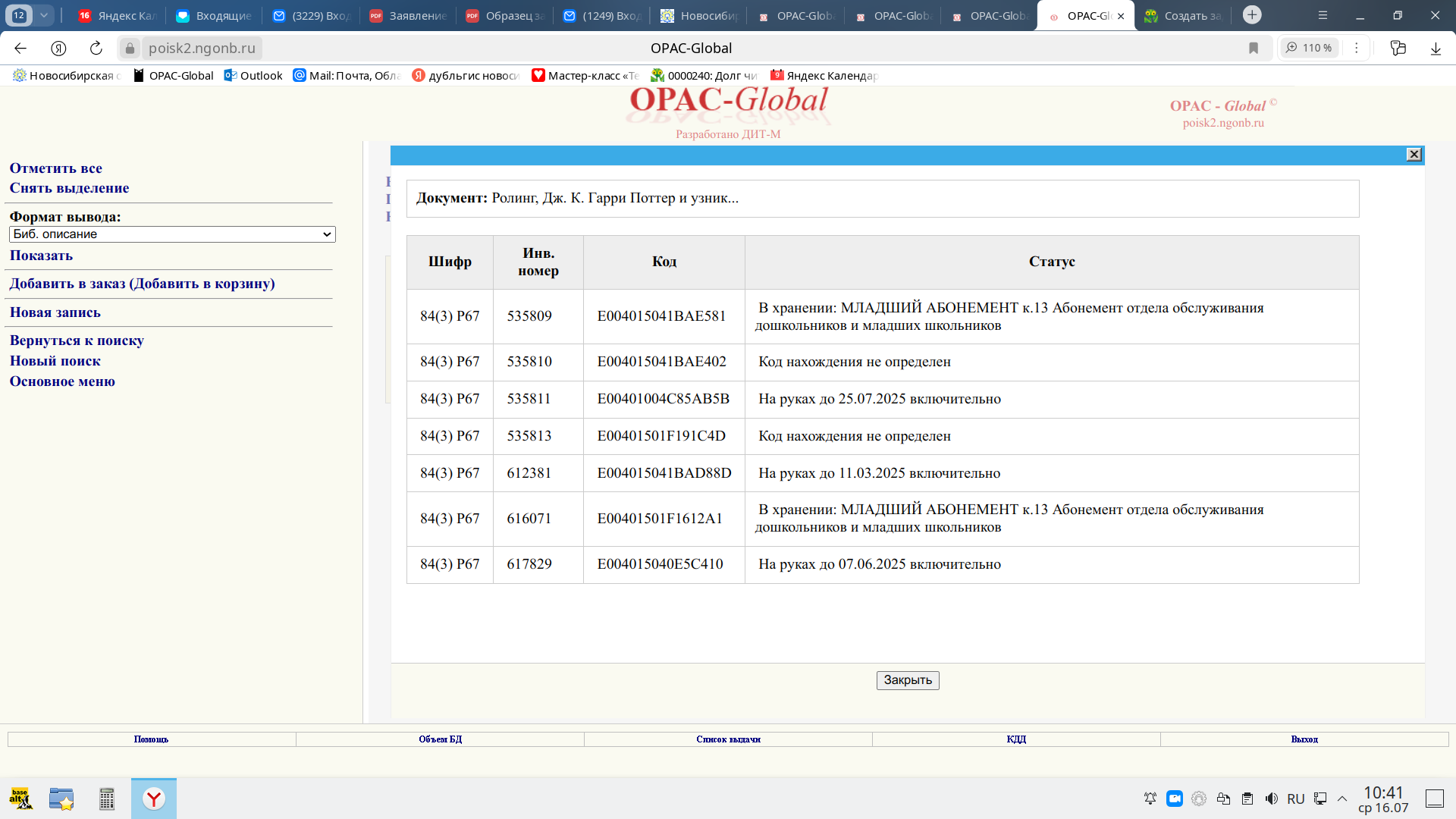 Списала с читателя 0026487018905 книгу E004015041BAE402 Проверьте, пожалуйста. |