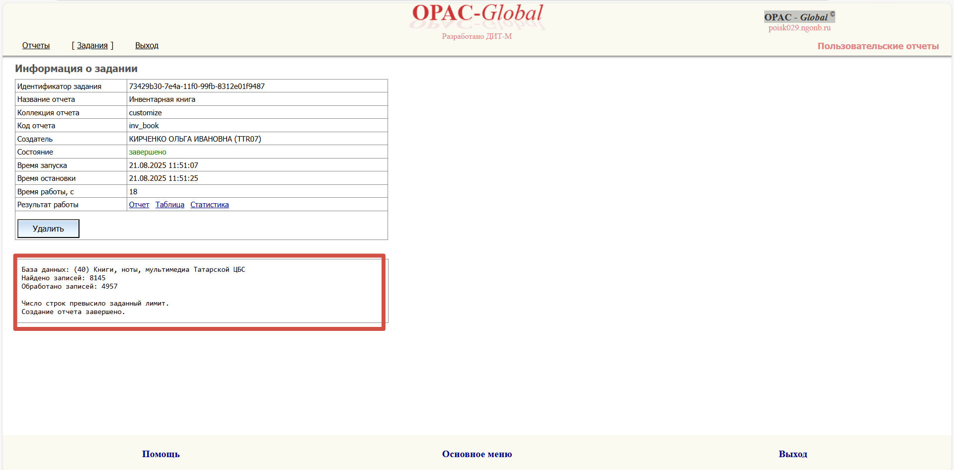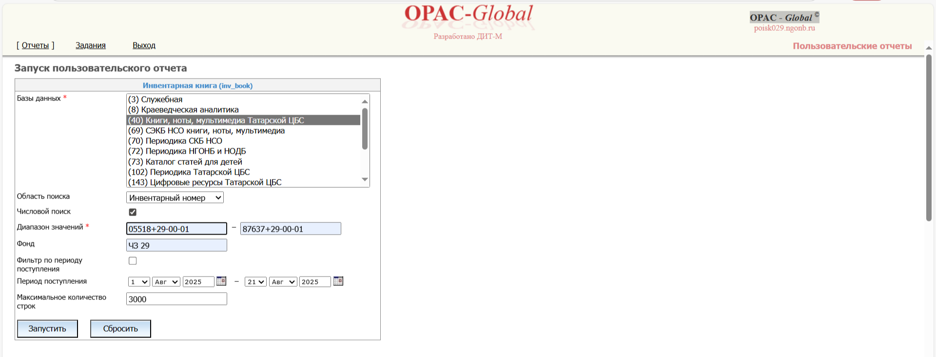 | Summary | 0000357: МАУК "Татарская ЦБС". Списание в OPAC - Global по актам. | ||||