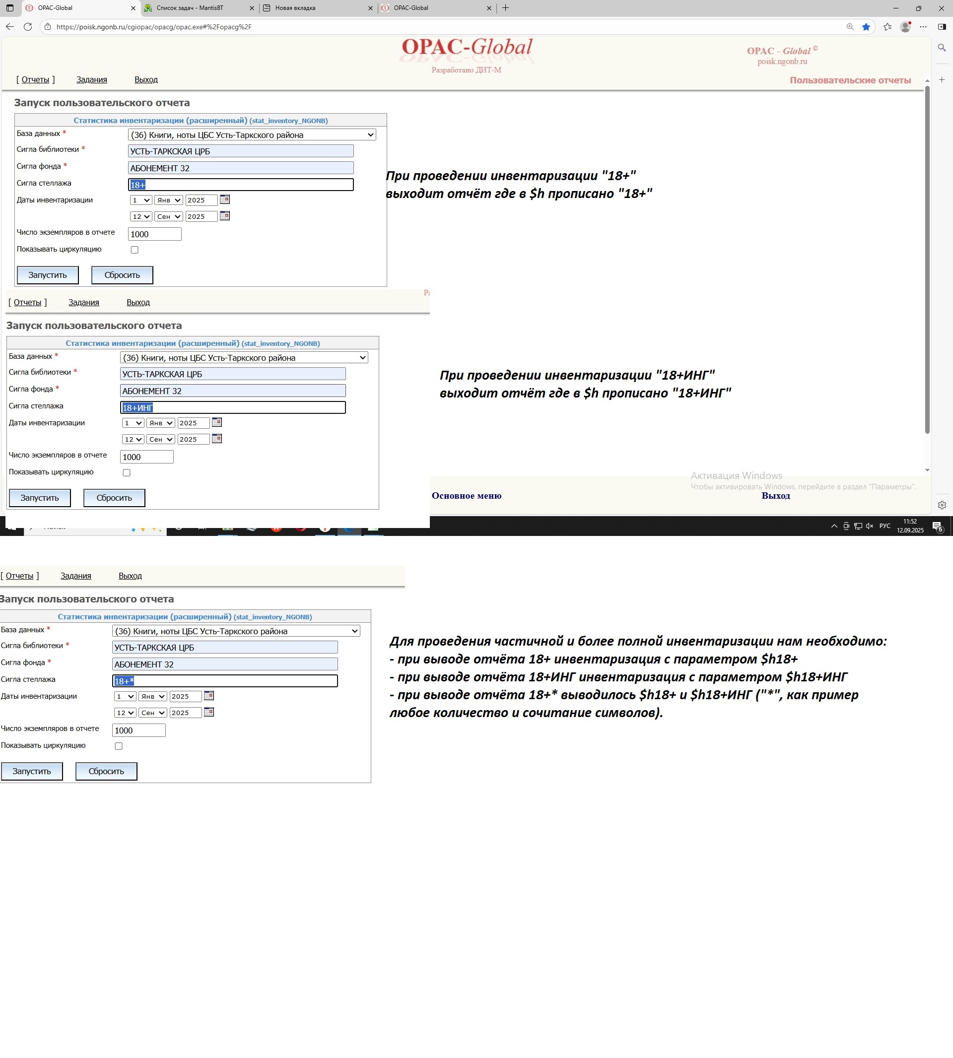 Нашими специалистами 18 августа 2022 года был создан подробный запрос по изменению функционала инвентаризация в АБИС и отправлен разработчикам. Изменение функционала планировалось в версии 2.4.1. Но на сегодня имеем новый ответ: "Эти изменения планируется рассмотреть после выпуска версии с новой СУБД". Сроки реализации не озвучены. |