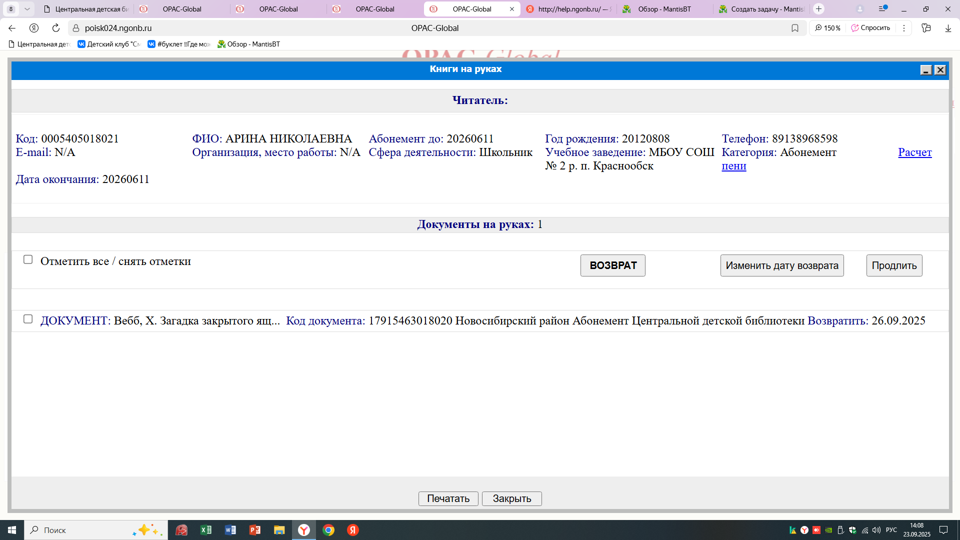 Summary | 0000419: Не списывается выданная по АБИС книга |