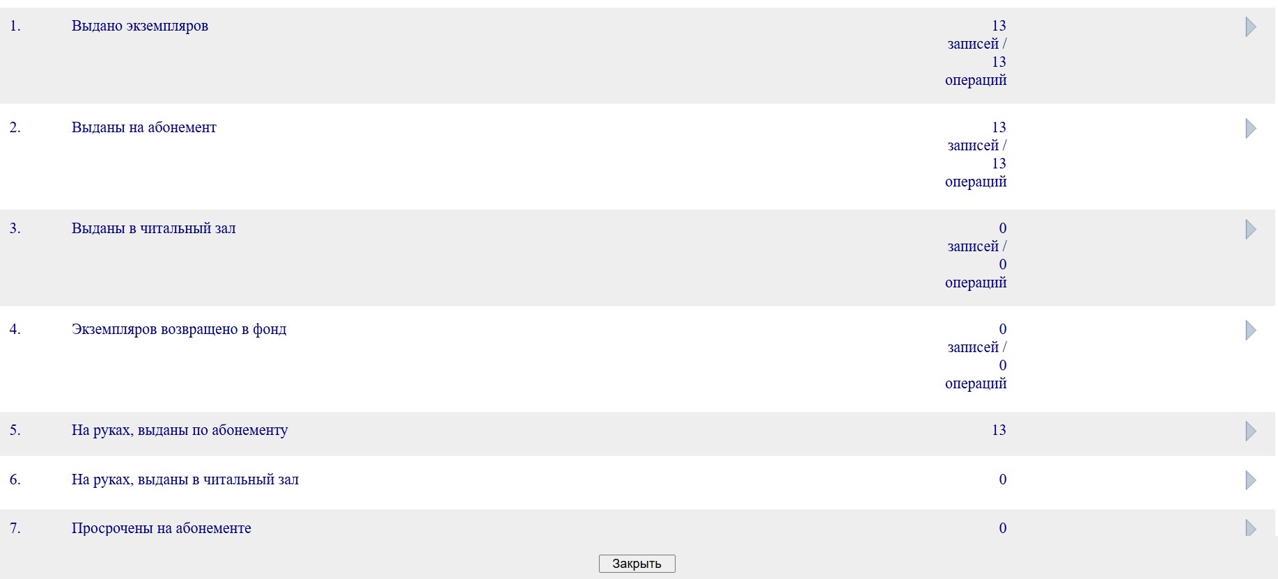 | Description | В ПРД "Читальный зал" Издревинской сельской библиотеки осуществлена выдача книг. Списать с читателя мы их не можем. Возможно потому, что в ПРД есть только операция "передать на абонемент", но нет операции "передано в читальный зал" Просим проверить настройки и добавить операцию в чз " передано в чз". Может это поможет осуществить возврат книг от читателя. | ||||