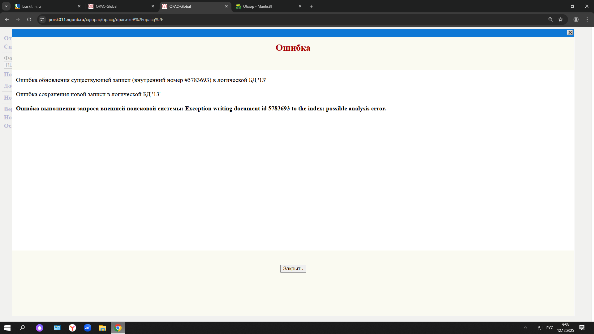 | 0000546 | Вопросы по АБИС Opac-Global НСО | Проблема | public | 2025-12-12 03:03 | 2025-12-12 03:21 |