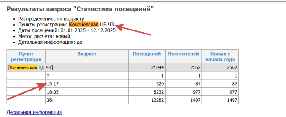 | Description | Добрый день. В пользовательских отчетах, графа посещения, в читальном зале ЦБ исчезла строчка 15-17 лет. На абонементе она есть | ||||
