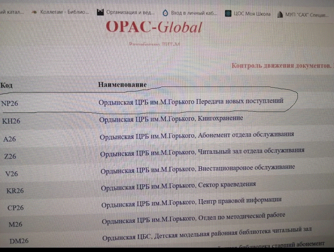 | Description | В модуле "Циркуляция" в "Контроле движения документов" дабавьте на логины ORD14 и ORD22 "Передача новых поступлений" | ||||