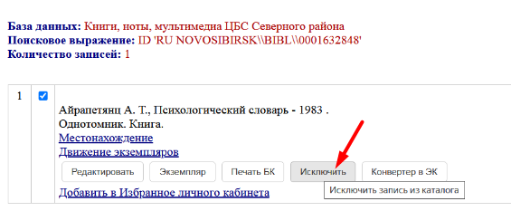 А сейчас списала книгу и в нашей базе и тоже не показывает что списана.