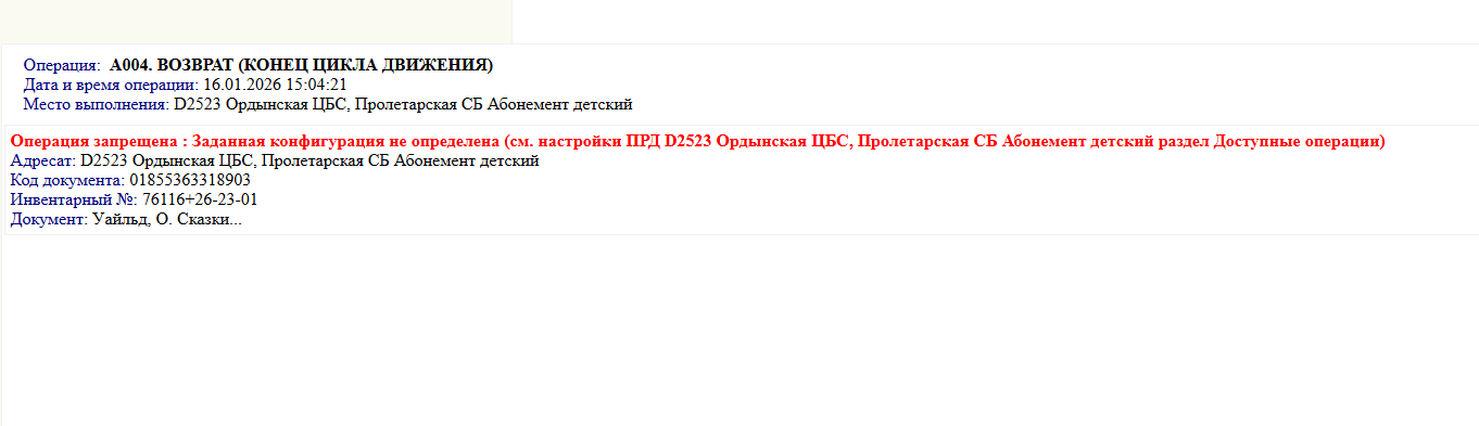 DescriptionДобрый день. При возврате книг на детском абонементе выходит ошибка