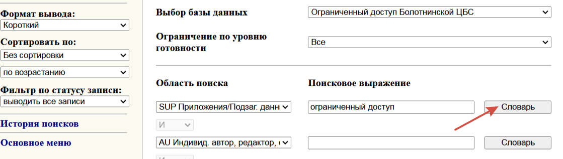 | Description | модуль "Каталогизация" в строке "Выбор базы данных" добавьте для BLT14, BLT 26, BLT 09 базу "Ограниченный доступ | ||||