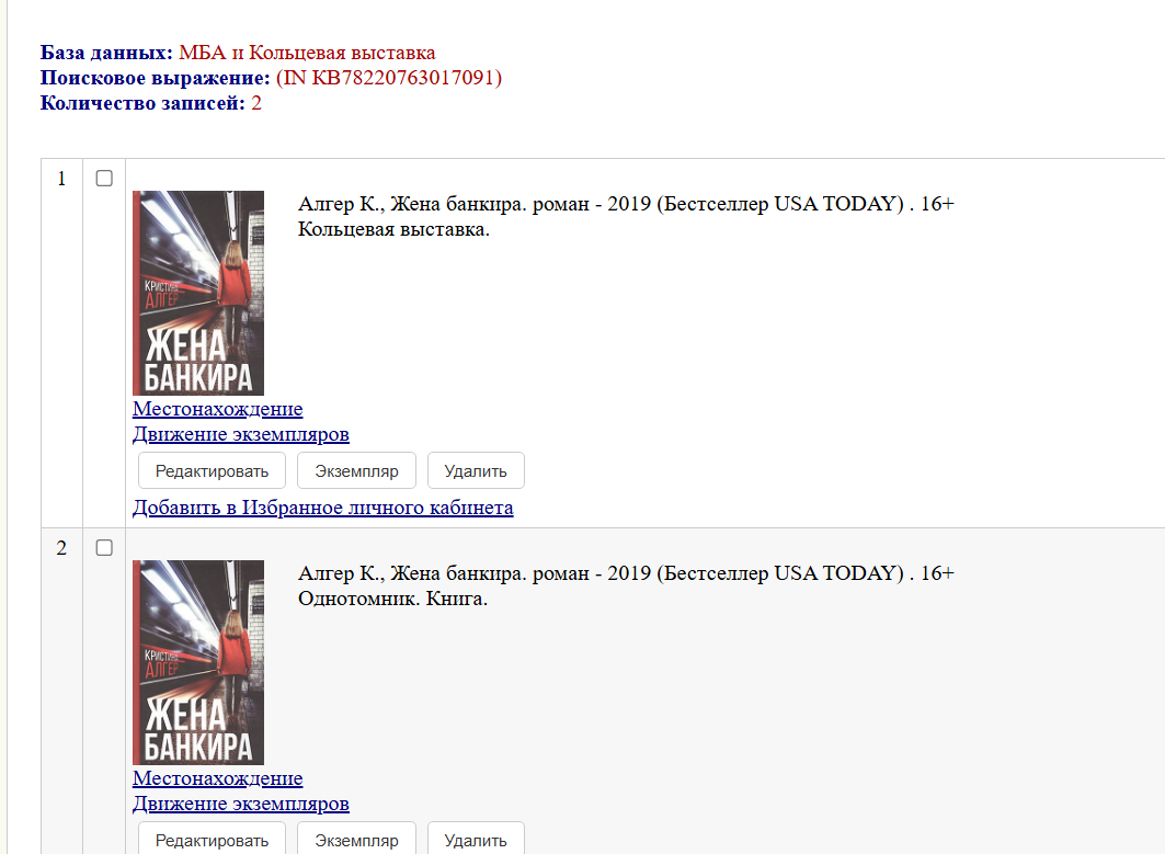 | Description | При работе с Кольцевой выставкой в Новом году (2026) возникли проблемы. Почему-то получилось по 2 экз. книг. Хотя при принятии выставки было по 1 экз. Поэтому не можем сделать возврат от читателей. Как пример, приложено фото. | ||||
