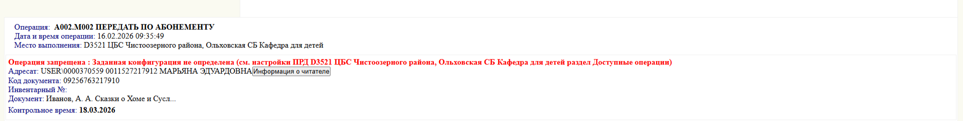 DescriptionЗдравствуйте, Лариса Анатольевна! Не получается выдать книги читателю.