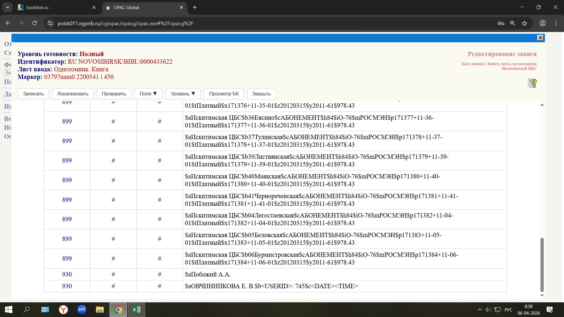 | 0000762 | Вопросы по АБИС Opac-Global НСО | Проблема | private | 2026-04-06 02:12 | 2026-04-07 09:50 |