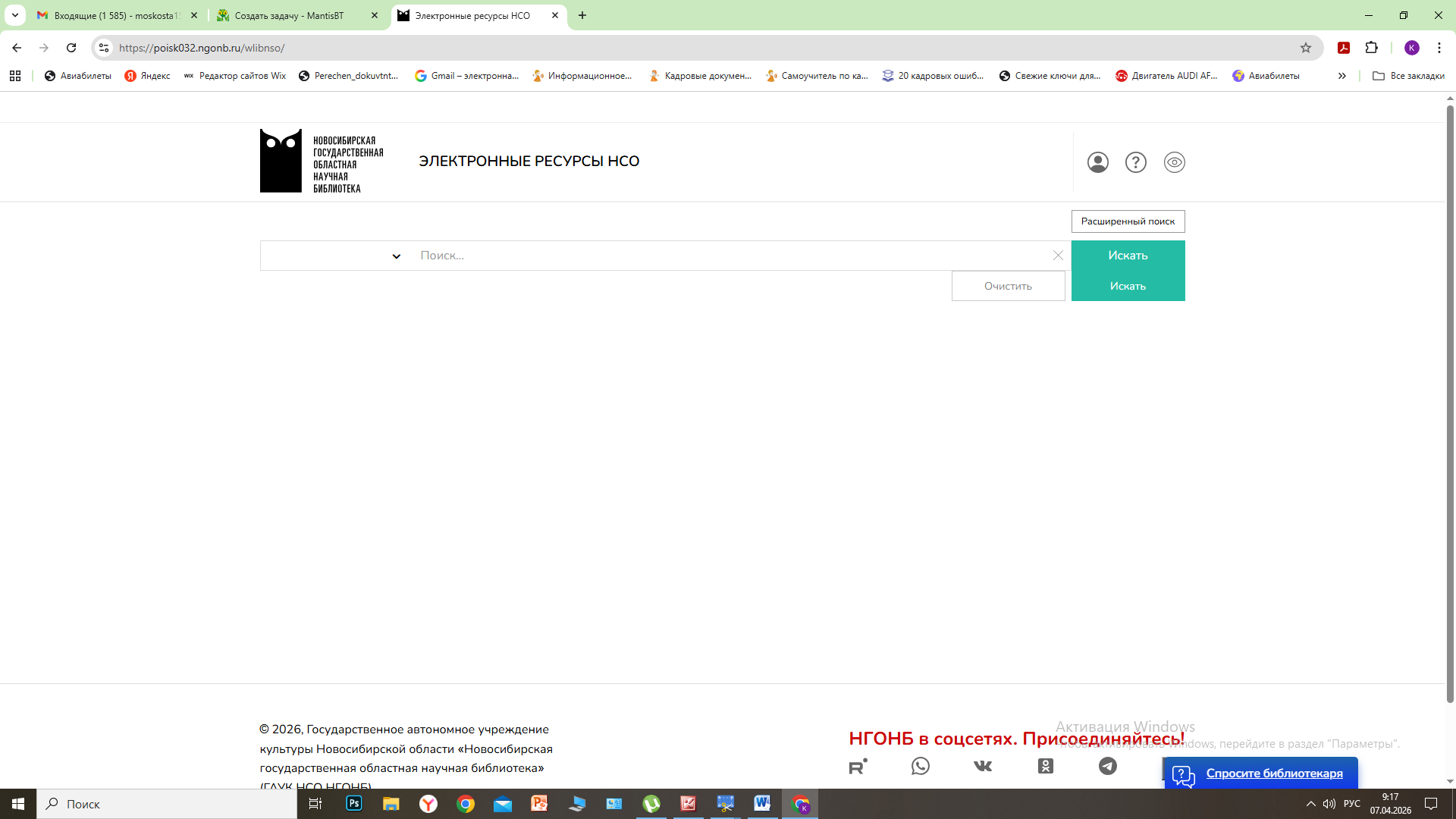 | 0000764 | Вопросы по АБИС Opac-Global НСО | Проблема | public | 2026-04-07 02:18 | 2026-04-09 09:48 |