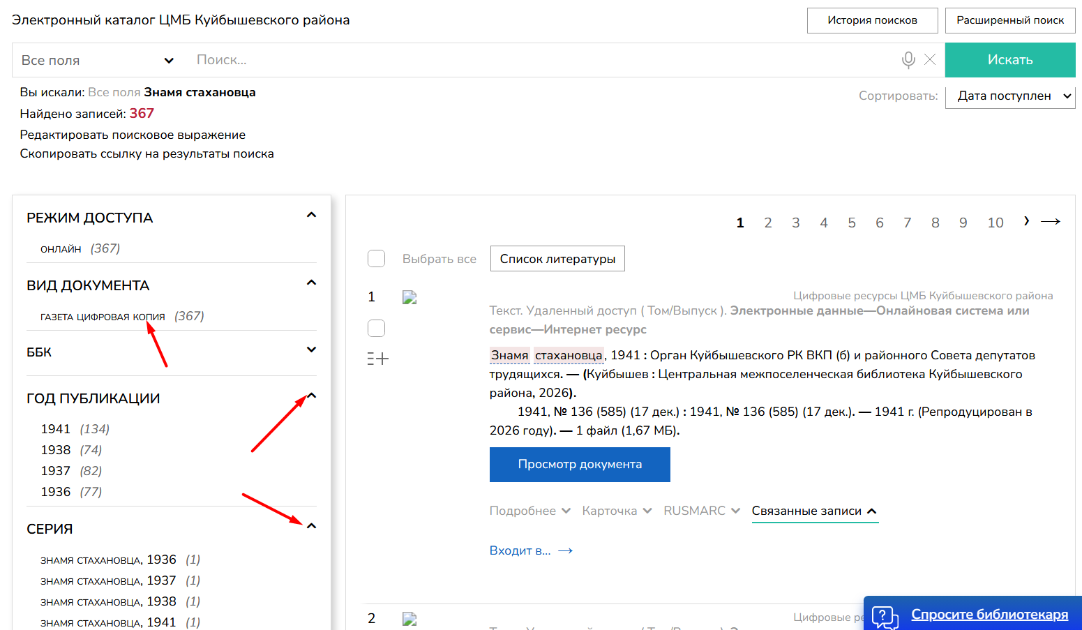 | Description | Добрый день! В электронном каталоге поменялся интерфейс, и в связи с этим у читателей возникли сложности с доступом к документам, опубликованным в Электронной библиотеке. Если раньше, нажимая кнопку "Войти как читатель", мы попадали на таблицу, задающую поиск, и можно было легко посмотреть интересующие документы. Теперь же мы попадаем на сайт НГОНБ, куда выгружены далеко не все оцифрованные документы. Хотелось бы получить инструкцию, как действовать нашим читателям теперь. Мы опубликовали в электронной библиотеке краеведческие альбомы и подшивки газет "Знамя стахановца". Читатели хотят поработать с этими документами, а мы не можем предоставить им эту возможность. | ||||
