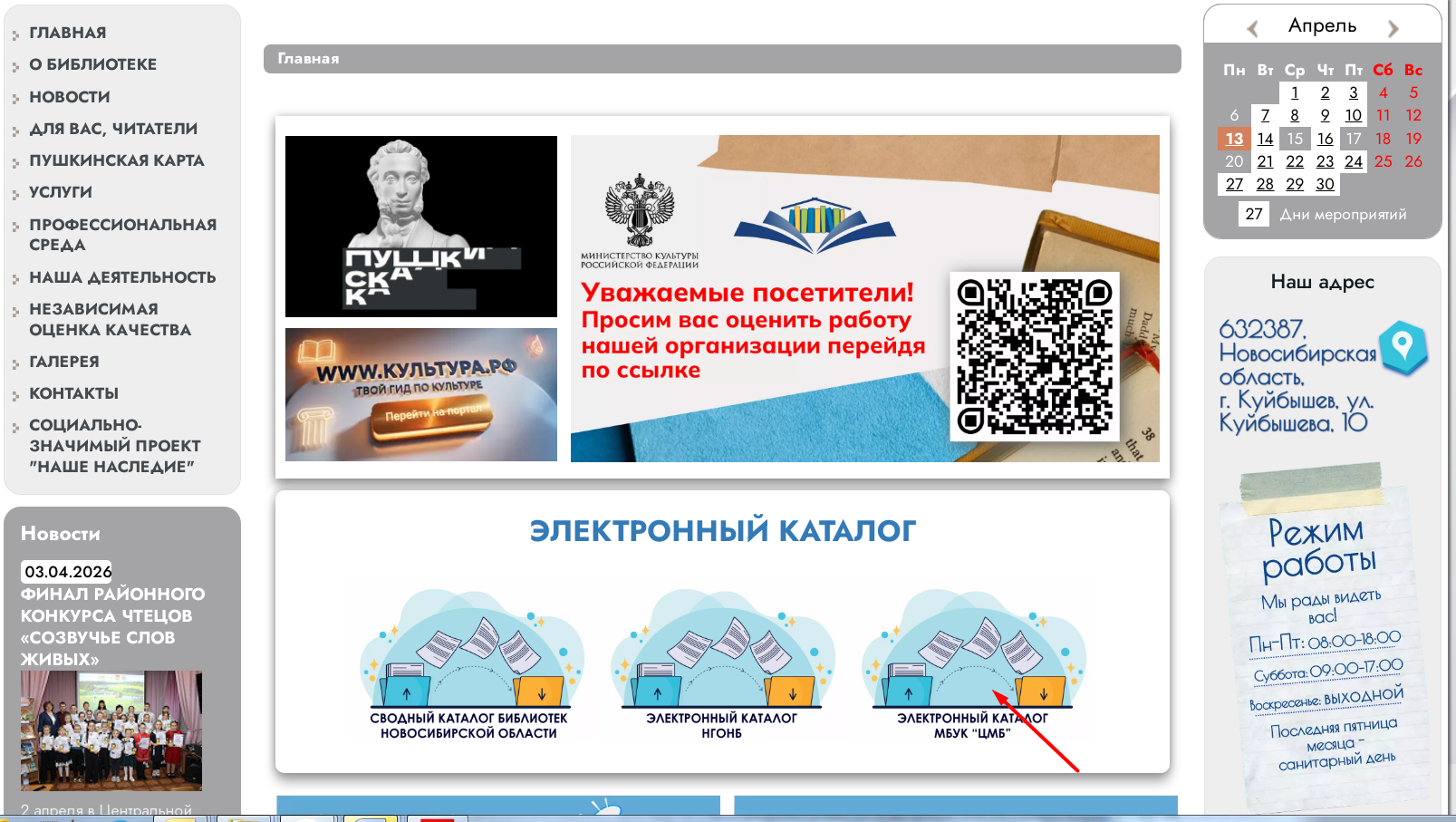 Я не могу зайти во вкладку Электронный каталог Куйбышевской ЦМБ. У меня этой вкладки нет |