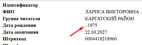 | Description | Здравствуйте. Не можем выдавать читателю штрихкод: 0004418218960. В читателях числится. | ||||
